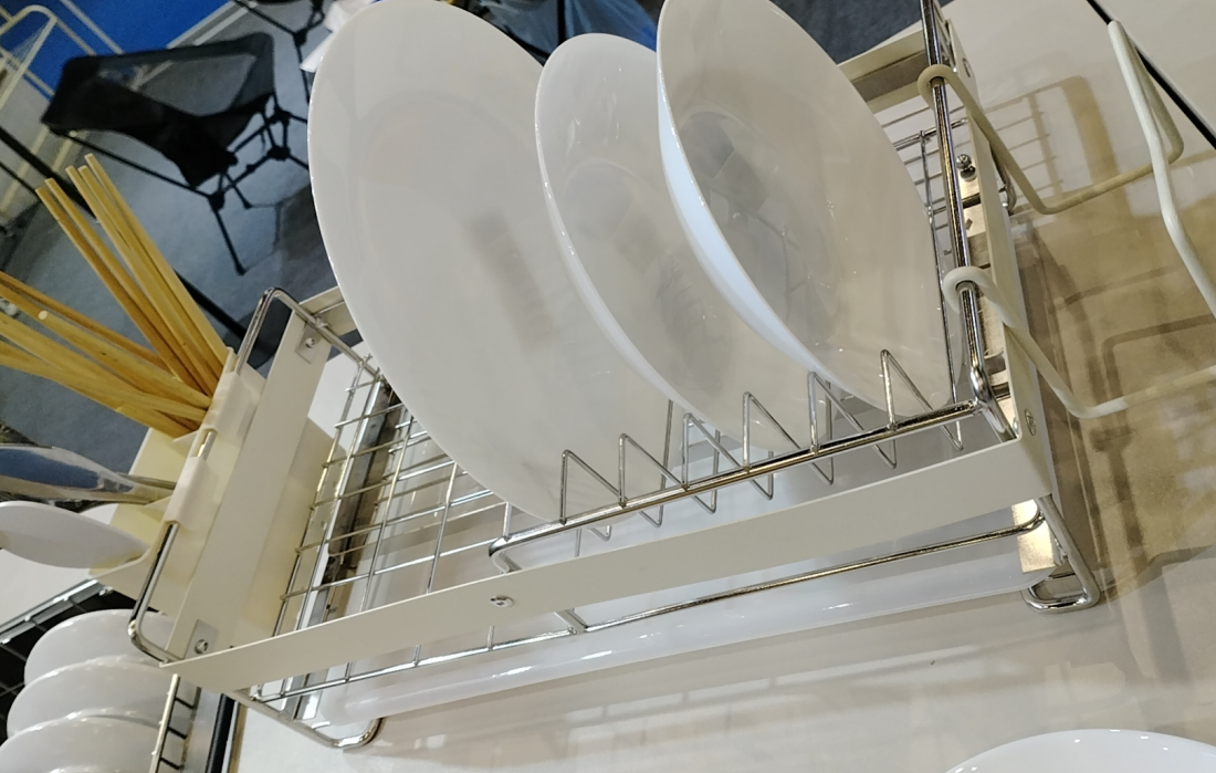 Seria Kitchen Storage: Wyjątkową cechą była wysuwana suszarka do naczyń ze stali nierdzewnej, zaprojektowana z myślą o optymalnej funkcjonalności i oszczędności miejsca. Seria obejmuje również wielofunkcyjne stojaki naścienne i magnetyczne uchwyty na noże, wszystkie wykonane w minimalistycznej estetyce, idealne do kompaktowych, nowoczesnych kuchni.