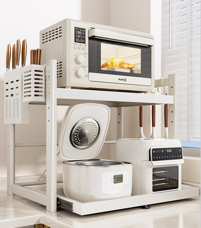 Po pierwsze, widoczność: wiele organizerów zawiera podzielone przegródki, wielopoziomowe półki lub sekcje z etykietami, co oznacza, że każdy słoik na przyprawy, narzędzie lub naczynie ma swoje dedykowane miejsce. Koniec z przekopywaniem się przez stos w poszukiwaniu tego, czego potrzebujesz — wszystko widzisz na pierwszy rzut oka. Jest to szczególnie przydatne w przypadku przypraw: na przykład wielopoziomowe organizery umożliwiają układanie słoików jeden na drugim, tak aby przednie etykiety nigdy nie były zasłonięte przez wyższe.