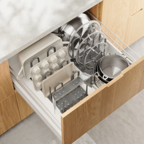 | Regał z drutu | Drut stalowy powlekany | 100–300 funtów | Kuchnia, spiżarnia, garderoba |